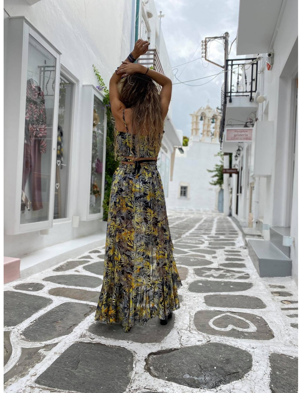 φούστα με σχεδία  και χρυσή κλωστή λεπτομέρεια  με λάστιχο στη μέση ημιδιαφανές one size
